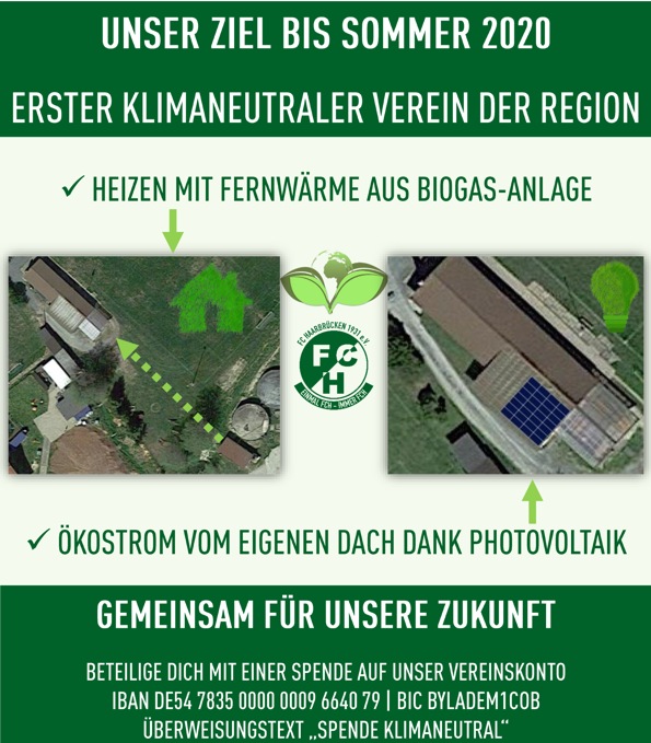 „Wir wollen der erste klimaneutrale Sportverein der Region werden“, so der Vorsitzende Simon Weber. „Unser Verein hat mit seinen zahlreichen Auszeichnungen – zuletzt mit der Verleihung der „Goldenen Raute“ des Bayerischen Fußball-Verbandes – seine Vorreiter-Rolle in vielen Bereichen unterstreichen können. Nun wollen wir auch in Sachen Klimaschutz als erster Verein in der Region zeigen, dass wir Verantwortung übernehmen. Nicht nur für 430 FCH-Mitglieder mit einem Jugendanteil von rund 50%, sondern für die Energiewende vor Ort.“